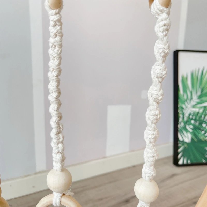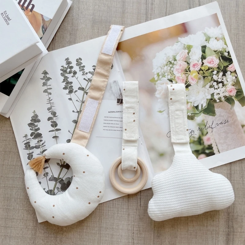 This natural gym baby toy is made of combination of cotton thread, natural wooden circles and beads, free of any chemicals, and sanded to be smooth, no harm for babies.